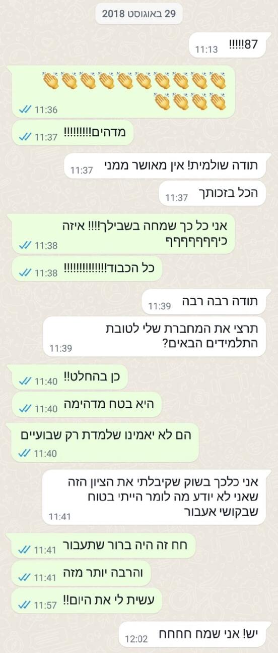 מעל עשר שנים אני מעבירה שיעורים פרטיים לסטודנטים ממוסדות לימוד שונים בארץ, אני מכירה את ההבדלים בין המוסדות ואת התוכן הנלמד בהם.