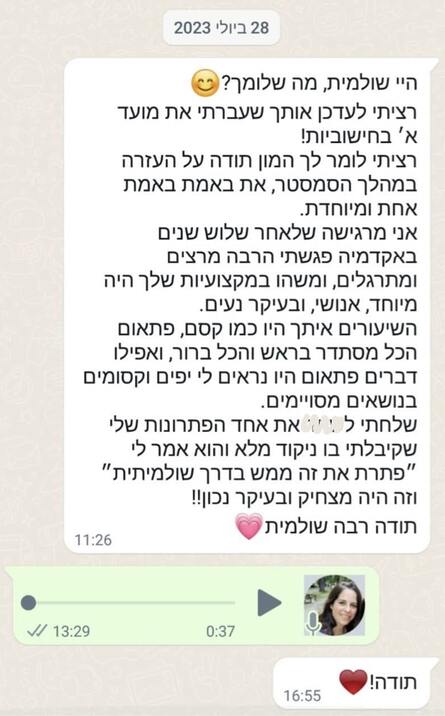 מעל עשר שנים אני מעבירה שיעורים פרטיים לסטודנטים ממוסדות לימוד שונים בארץ,